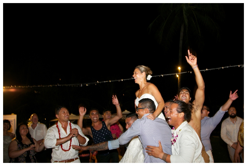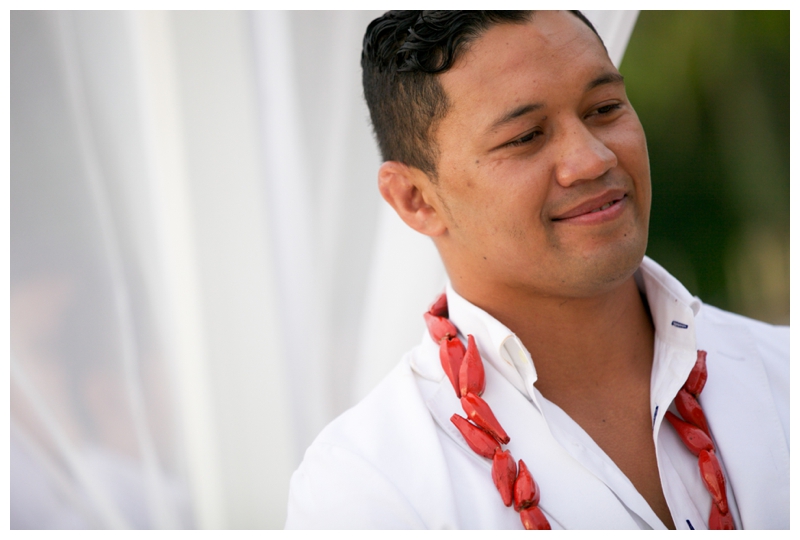 Even though it rained and it poured right before the ceremony the guests just took shelter and began the party. Eventually the skies cleared and the wedding ceremony went on at the beach. Everyone was dancing all day and all night. The boys were dancing on the lawn before the ceremony, the bridal party were dancing after they walked down the aisle, everyone was dancing when the couple made their grand entrance to dinner. I think the staff were a bit taken aback and wondering what was going on. Later there were traditional Samoan dances and a haka. It was awesome and it really was one of the nicest weddings for 2013.