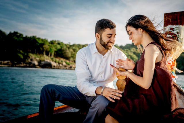 Raul wanted to propose in Phuket on a long tail boat in the middle of the ocean. He choose the perfect moment, asking her when they were close and after he asked he gave her the most beautiful engagement diamond ring. And of course she said yes, once she stopped crying for joy.