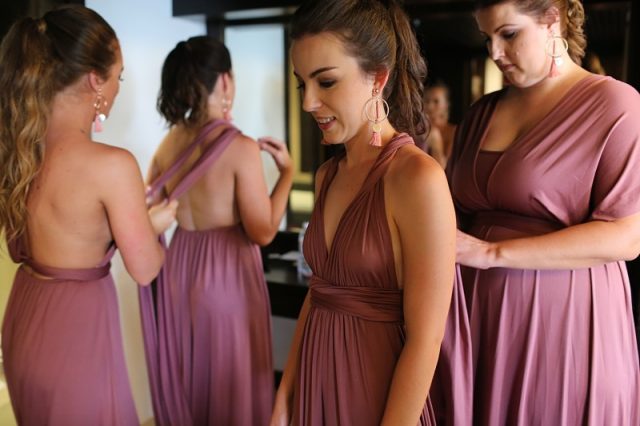 On the wedding day bridal hair and make-up was done by the talented Phuket-based UK stylist Lisa Allen. The bride had prepared nice details including personalized socks and underwear for the boys, lovely gifts for the girls including matching bathrobes, hash tags on the bottom of the bridesmaids shoes and her new married name engraved on her Tiffany & Co perfume bottle. Photographers love these details. We can’t get enough.